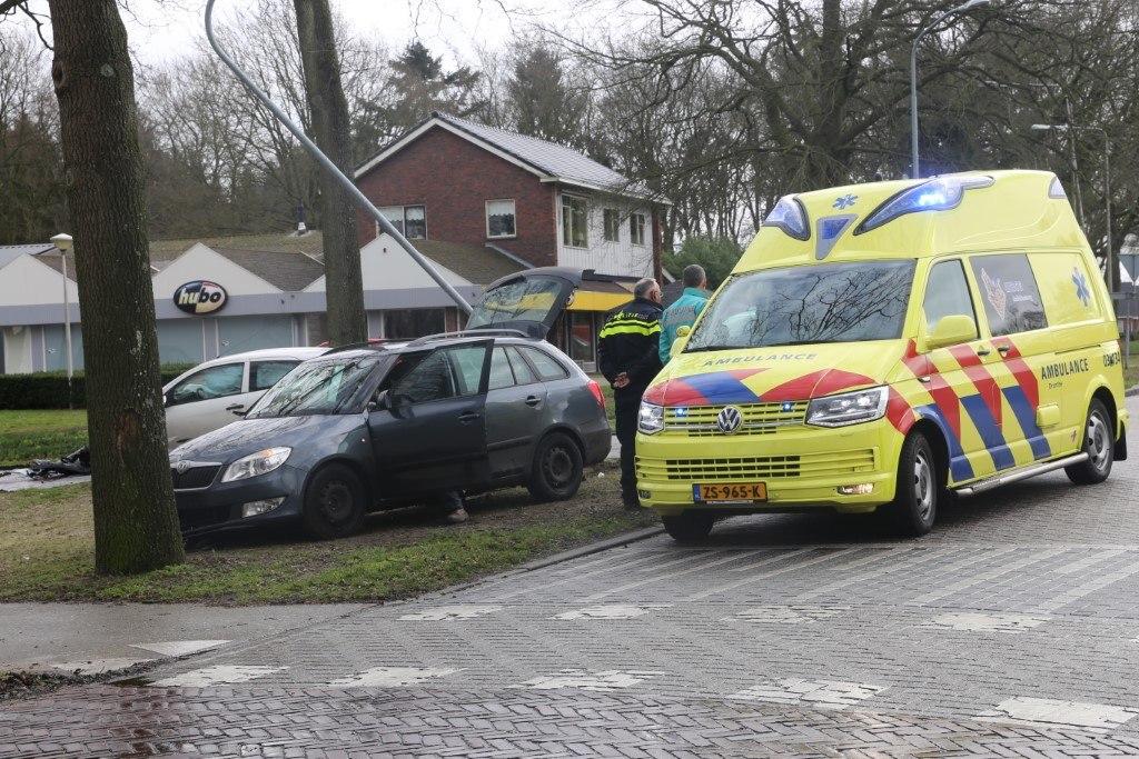 Bij het ongeluk is ook een lantaarnpaal naast de weg geraakt. Deze staat nu scheef.
