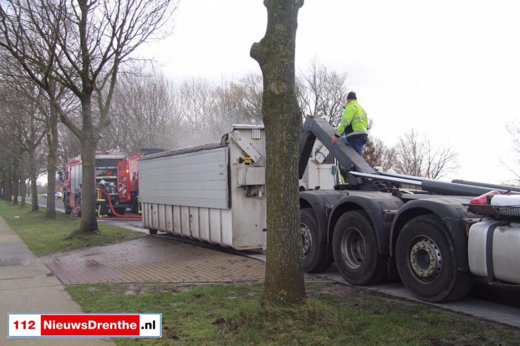 Nadat hij de brand opmerkte, zette de vrachtwagenchauffeur de container op de weg. Daar kon de brandweer het vuur blussen.
