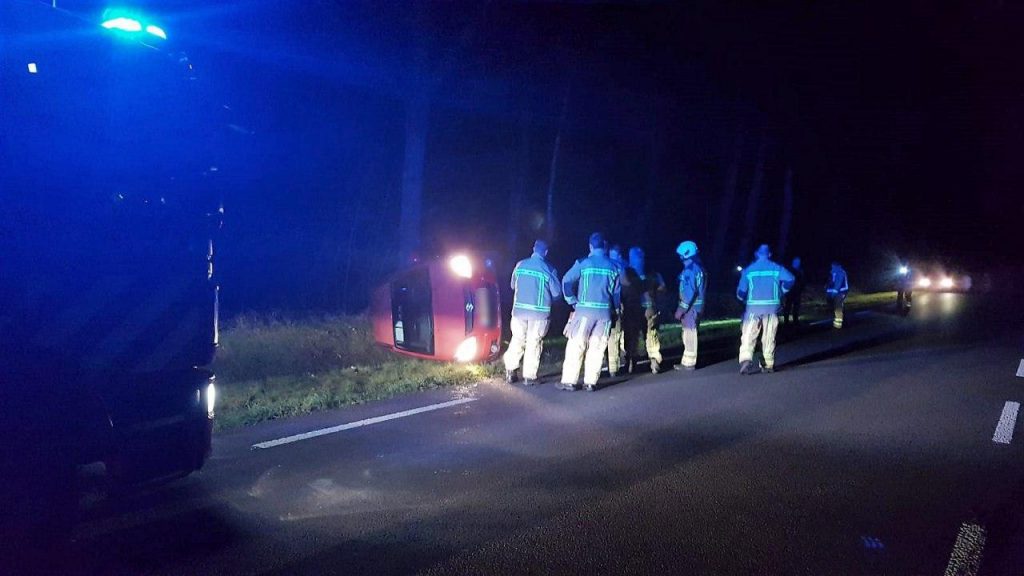 De man reed over de N857, toen hij door onbekende reden de macht over het stuur verloor. Hij kon zelf uit zijn auto klimmen. Het is onduidelijk hoe het slachtoffer eraan toe is.