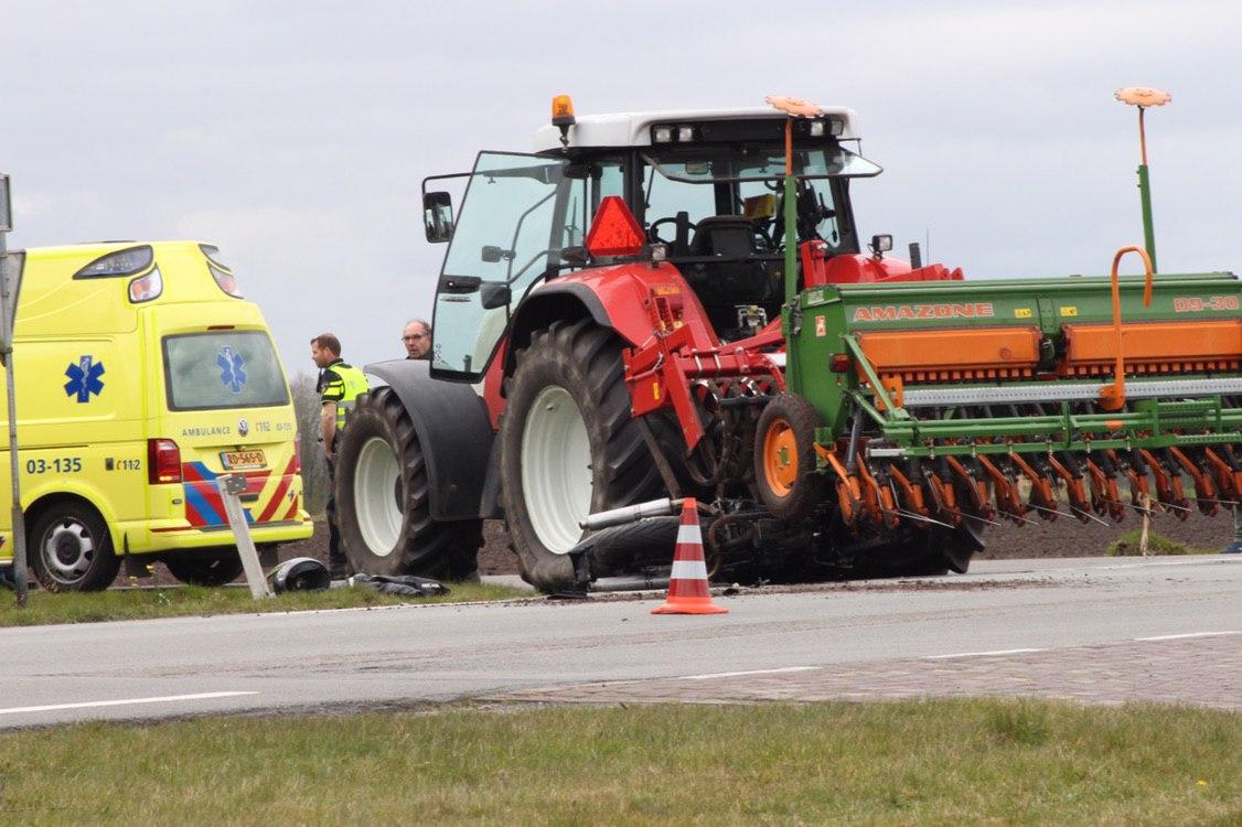 Bij een aanrijding tussen een motor en een tractor op de Odoornerweg in Emmen is vrijdagmiddag de bestuurder van de motor gewond geraakt.