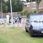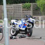 Zowel de motor als de auto raakten beschadigd bij dit ongeval.