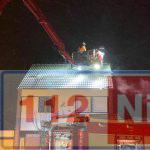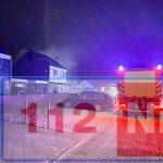 Brand op een zolder aan de straat Borgerbrink in Emmen afgelopen nacht. De brandweer rukte uit met onder andere een hoogwerker.