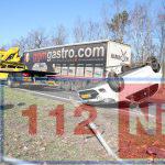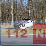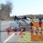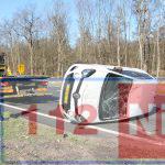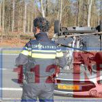 Auto belandt op z’n dak op de Rondweg in Emmen