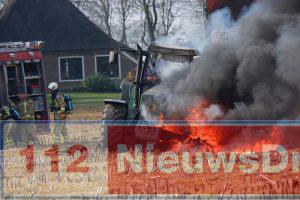 Het voertuig vatte op een weiland vlam. De brandweer kon niet voorkomen dat de trekker volledig uitbrandde. Bij de brand raakte niemand gewond.