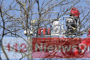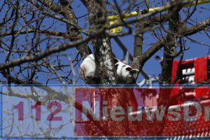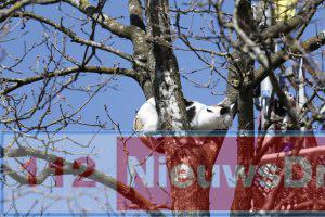 Even voor twaalf uur kreeg de brandweer een melding “Dier vast op hoogte” aan de Calthornerbrink in Emmen. Ter plaatse bleek er een kat in een boom te zitten, die er niet meer uit durfde. Met de hoogwerker is geprobeerd het dier uit de boom te halen. Helaas was de kat niet van plan zich zo makkelijk te laten vangen. In zijn poging uit handen van de brandweerlieden te komen sprong het dier uit de boom. Daardoor viel de kat behoorlijk hard op de grond. Vervolgens verstopte het dier zich in de motorruimte van een nabij geparkeerde auto.