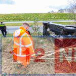 Een gedeelte van de weg is afgesloten. Een bergingsbedrijf is ingeschakeld om de auto te bergen.