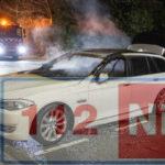 De brandweer bluste de brand en kon daarna weer retour. Van de auto bleef niet veel over.
