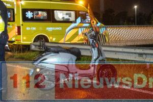 Een scooter en een auto zijn met elkaar in botsing gekomen in Emmen. Dat gebeurde op de fietsoversteekplaats van de ovonde tussen de Statenweg en de Stadionweg.